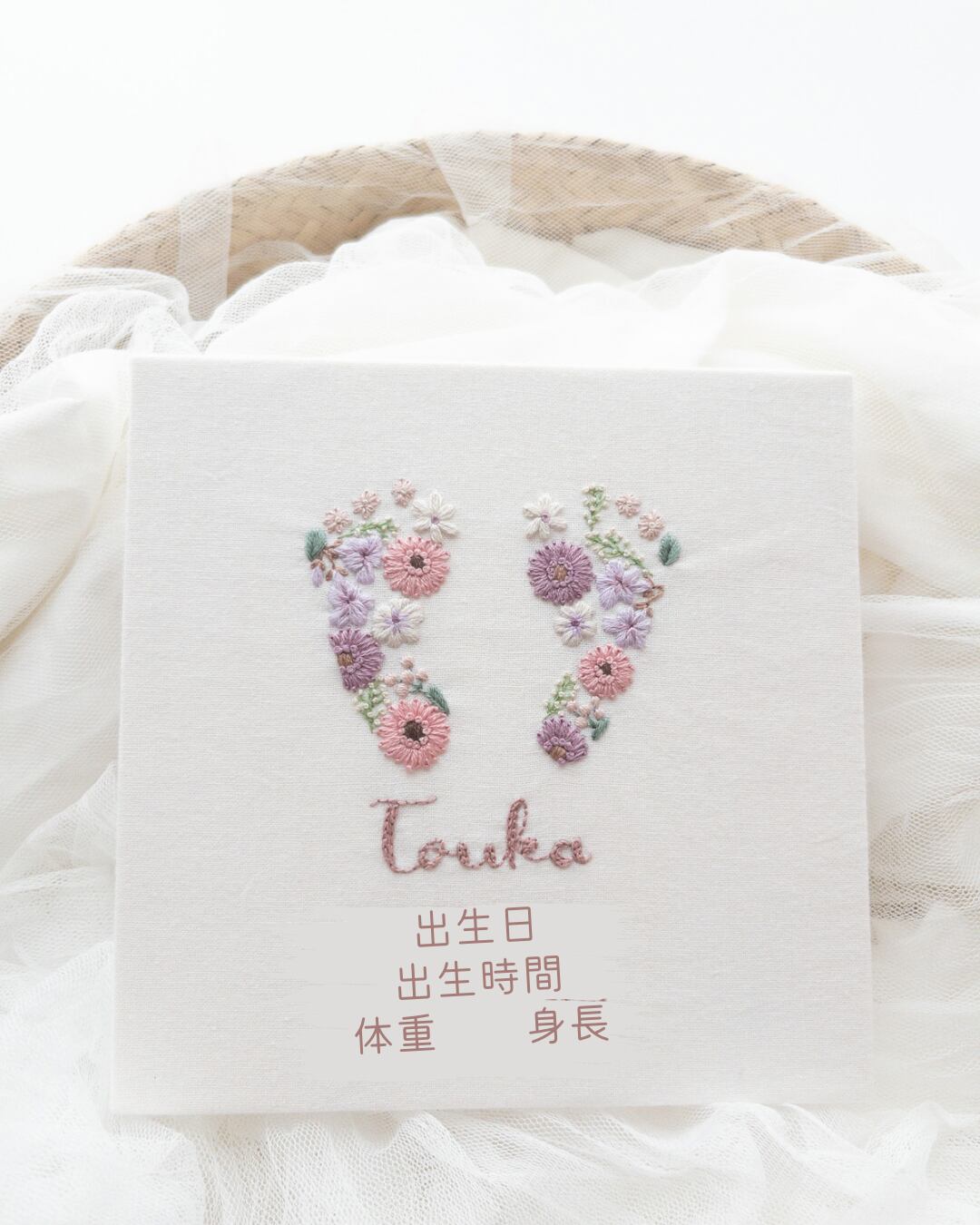 手形•足型刺繍は、小さなあんよやおてての赤ちゃんの思い出を、オシャレな刺繍ボードにする事で、
