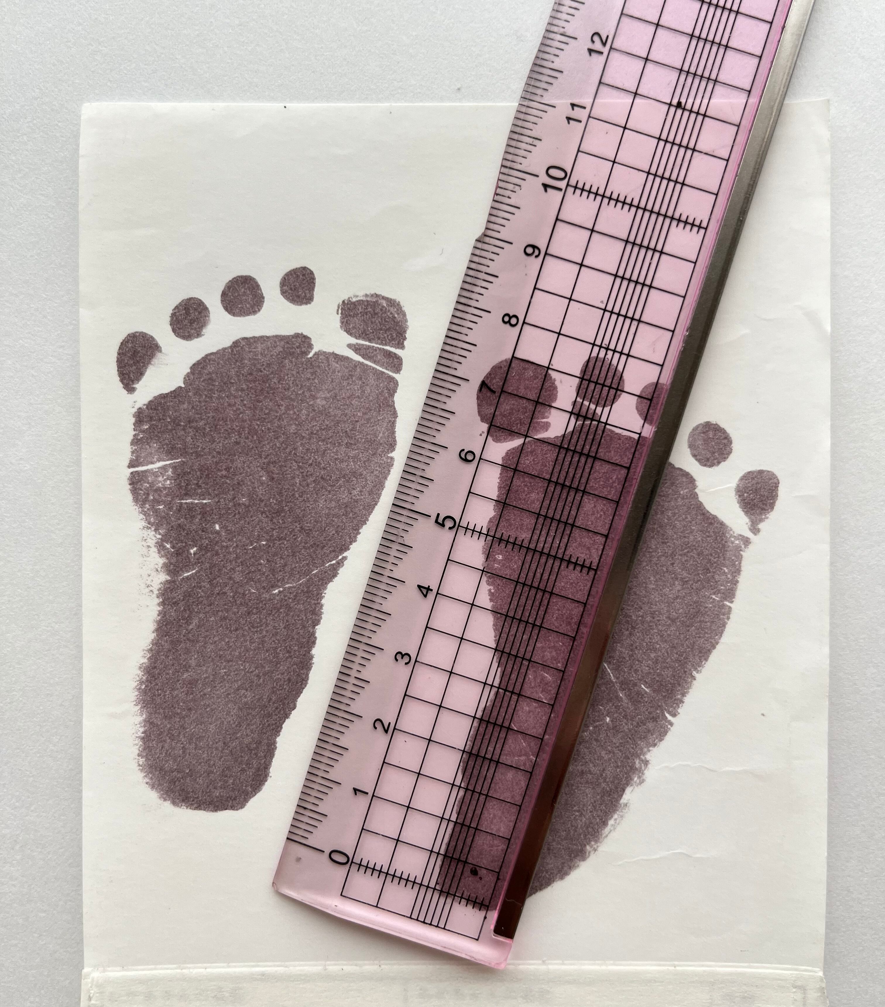 (朱肉や絵の具で足型や手形をご自宅でとって頂き、サイズがわかる様に定規等と一緒に写したお写真を送って下さい)