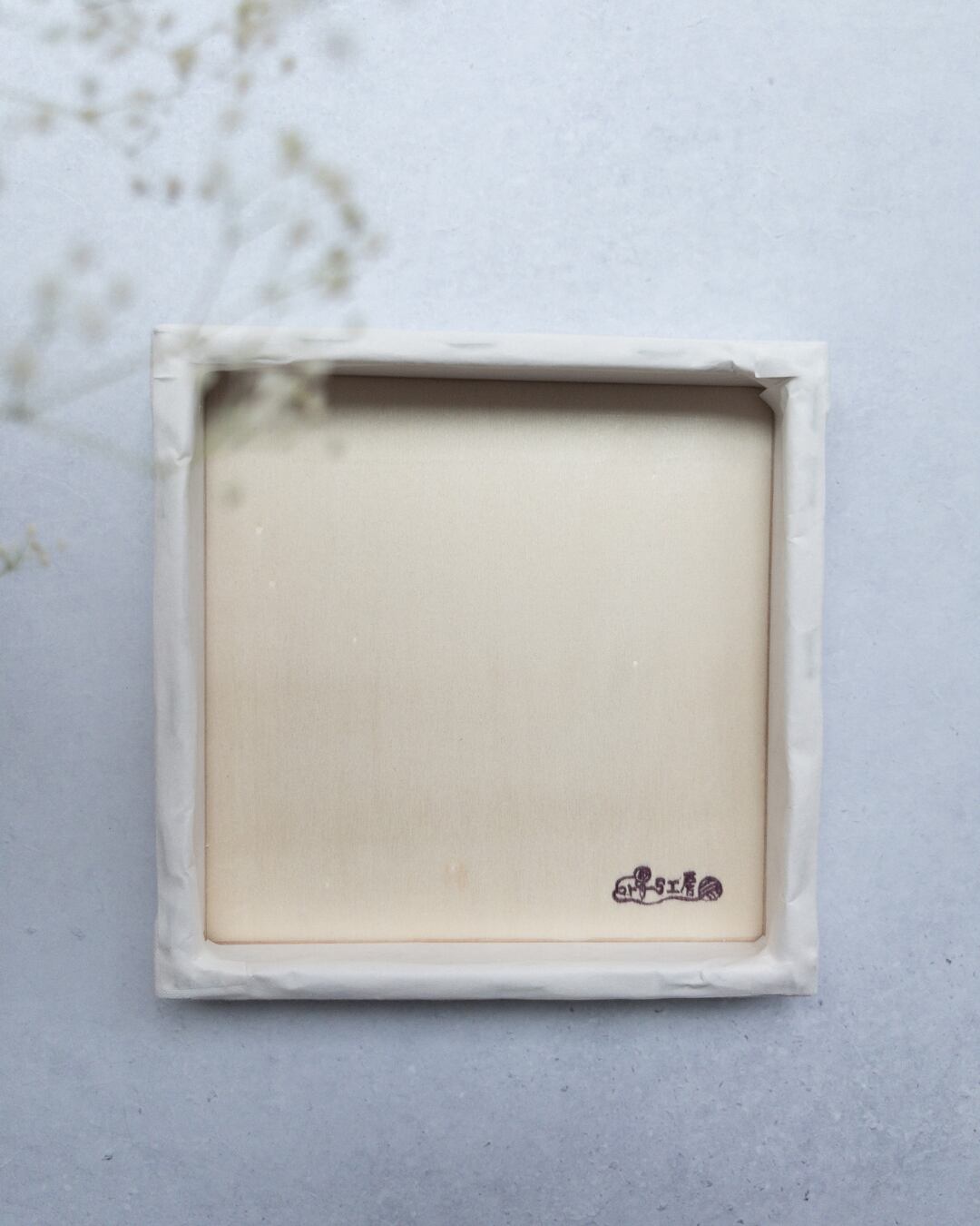 刺繍ボードの裏側処理は、水張りテープを使用し、美しい仕上がりとなる様に仕上げています。