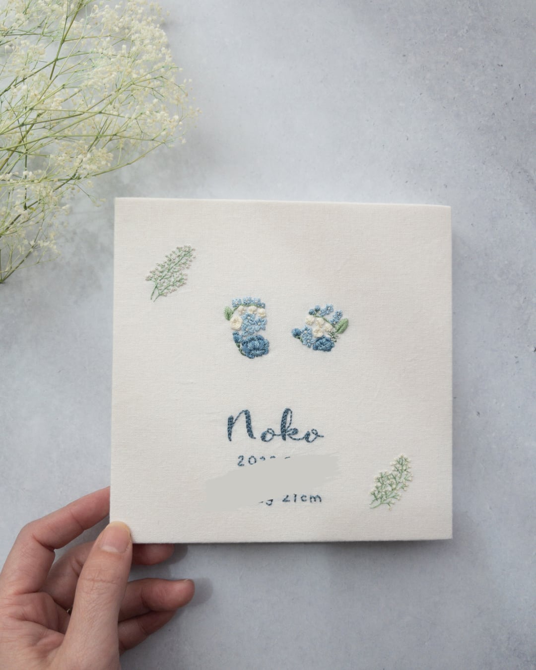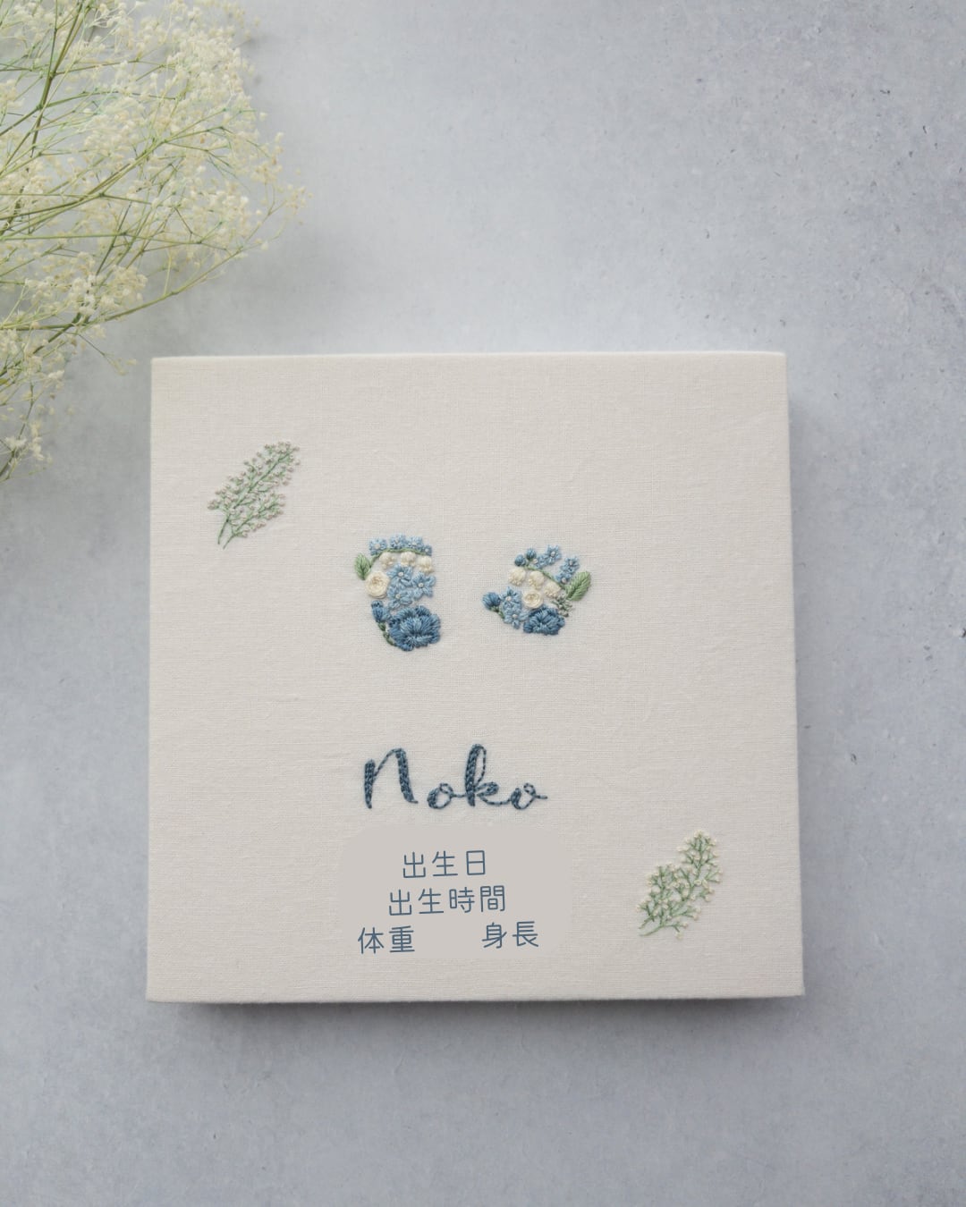 メモリアル足型・手型刺繍ボードです。